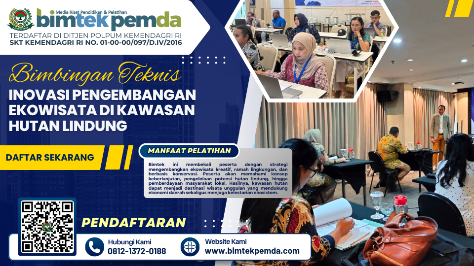 Bimtek Inovasi Pengembangan Ekowisata di Kawasan Hutan Lindung hadir untuk memberikan wawasan dan keterampilan dalam merancang serta mengelola ekowisata berkelanjutan. Peserta akan mempelajari konsep ekowisata modern, strategi pemasaran digital, hingga inovasi produk wisata berbasis alam dan budaya lokal. Melalui pelatihan ini, stakeholder kehutanan, pemerintah, maupun masyarakat dapat meningkatkan kapasitas dalam memanfaatkan potensi hutan lindung tanpa mengurangi fungsi ekologisnya. Bimtek ini menjadi solusi untuk menghadirkan ekowisata yang ramah lingkungan, memperkuat ekonomi lokal, serta mendukung konservasi hutan secara berkelanjutan.
