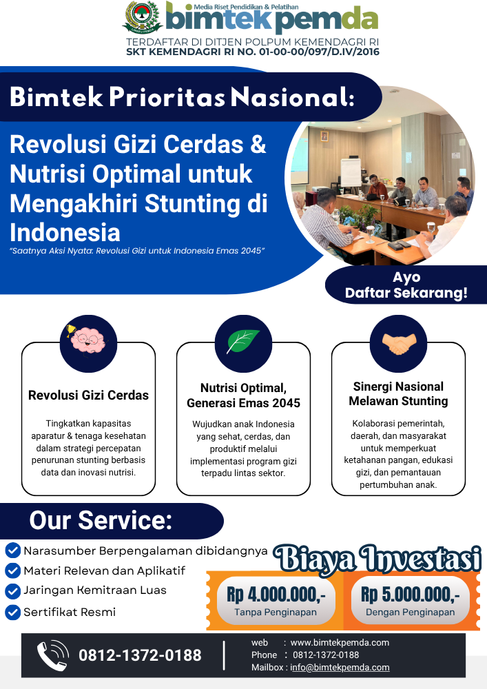 Sebagai respons terhadap kondisi tersebut, pemerintah bersama berbagai lembaga menghadirkan Bimbingan Teknis (Bimtek) Prioritas Nasional: Revolusi Gizi Cerdas dan Nutrisi Optimal untuk Mengakhiri Stunting di Indonesia. Program ini bukan sekadar pelatihan, melainkan gerakan transformasi pola pikir dan tindakan dalam pengelolaan gizi, edukasi nutrisi, serta penguatan koordinasi lintas sektor di tingkat pusat dan daerah.