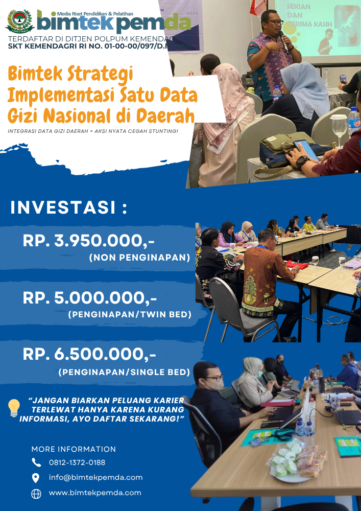 Sebagai rujukan utama untuk penguatan kapasitas daerah, artikel ini terhubung dengan pembahasan dalam Bimtek Prioritas Nasional: Revolusi Gizi Cerdas dan Nutrisi Optimal untuk Mengakhiri Stunting di Indonesia — sebuah inisiatif yang memperkuat komitmen daerah dalam mewujudkan Indonesia bebas stunting dan gizi buruk.