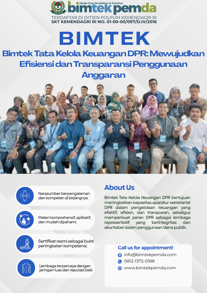 Melalui Bimbingan Teknis (Bimtek) Tata Kelola Keuangan DPR, lembaga legislatif dapat memperkuat peran dan integritasnya dalam memastikan pengelolaan anggaran yang efektif dan sesuai prinsip good governance.