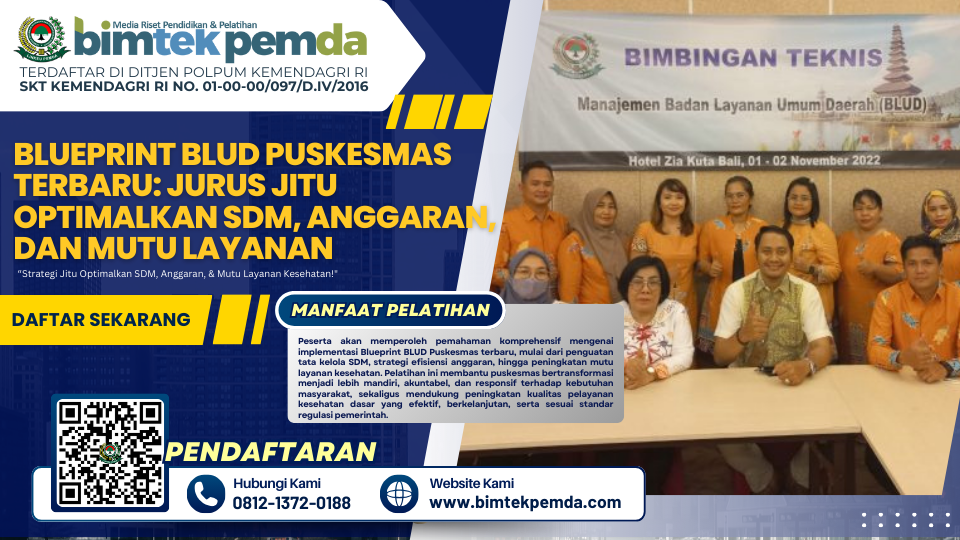 Segera daftarkan diri Anda dalam pelatihan dan bimtek BLUD Puskesmas terbaru agar siap menghadapi transformasi layanan kesehatan modern di daerah Anda.