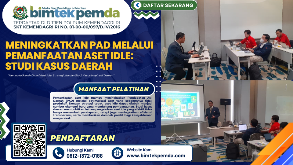 Untuk meningkatkan kapasitas aparatur dalam mengelola aset idle, diperlukan pelatihan teknis melalui Bimtek Revolusi Manajemen Aset Daerah: Optimalisasi PAD untuk Pembangunan Berkelanjutan.