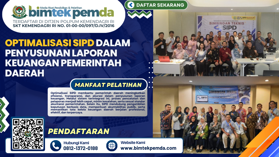 SIPD merupakan inovasi penting dalam pengelolaan keuangan pemerintah daerah. Dengan optimalisasi yang tepat, sistem ini mampu meningkatkan efisiensi, akurasi, serta transparansi penyusunan laporan keuangan.