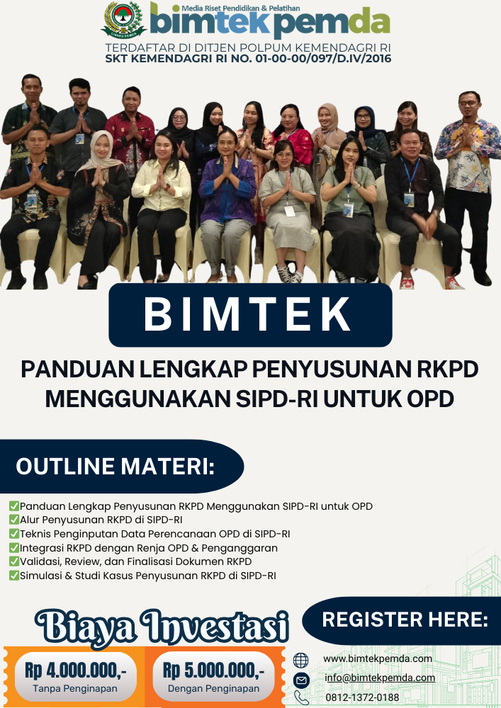 Artikel ini menjadi panduan komprehensif bagi OPD dalam menyusun RKPD menggunakan SIPD-RI, mulai dari pengantar, alur kerja, contoh kasus, hingga strategi optimalisasi. Artikel ini juga terhubung dengan artikel pilar Bimtek Peningkatan Kapasitas Operator SIPD-RI: Implementasi Modul Perencanaan, Keuangan, dan Barang Milik Daerah yang dapat Anda baca melalui tautan berikut: Bimtek Peningkatan Kapasitas Operator SIPD-RI: Implementasi Modul Perencanaan, Keuangan, dan Barang Milik Daerah.