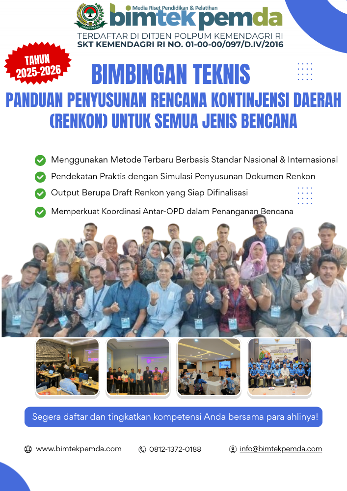 Rencana Kontinjensi Daerah (Renkon) merupakan instrumen penting dalam sistem kesiapsiagaan pemerintah daerah untuk menghadapi potensi bencana. Dokumen Renkon tidak hanya memberikan gambaran skenario kemungkinan terburuk (worst-case scenario), tetapi juga menyusun langkah operasional, struktur komando, sumber daya, hingga mekanisme koordinasi antar-perangkat daerah dan pemangku kepentingan.