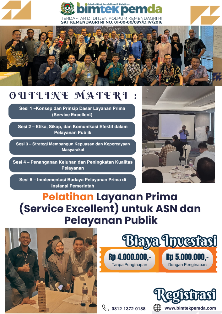 Pelatihan Layanan Prima (Service Excellent) untuk ASN dan Pelayanan Publik bukan hanya sekadar program pengembangan SDM, tetapi juga fondasi penting dalam menciptakan pemerintahan yang berorientasi pada masyarakat.