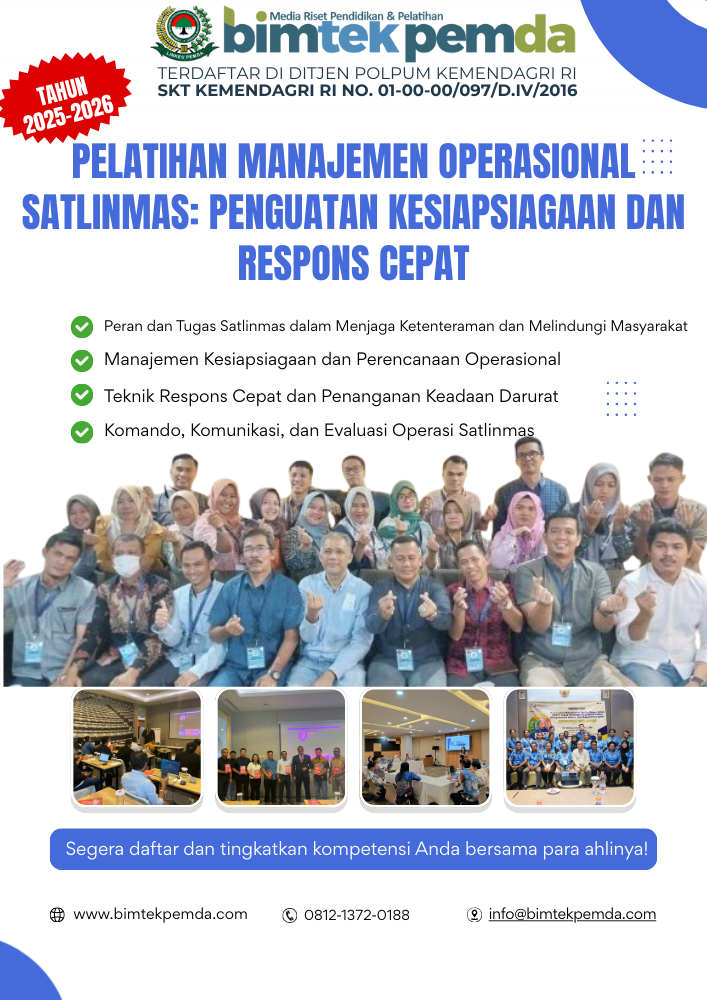 Tantangan tersebut menegaskan pentingnya Pelatihan Manajemen Operasional Satlinmas sebagai upaya sistematis untuk meningkatkan kualitas peran dan fungsi Satlinmas di daerah.