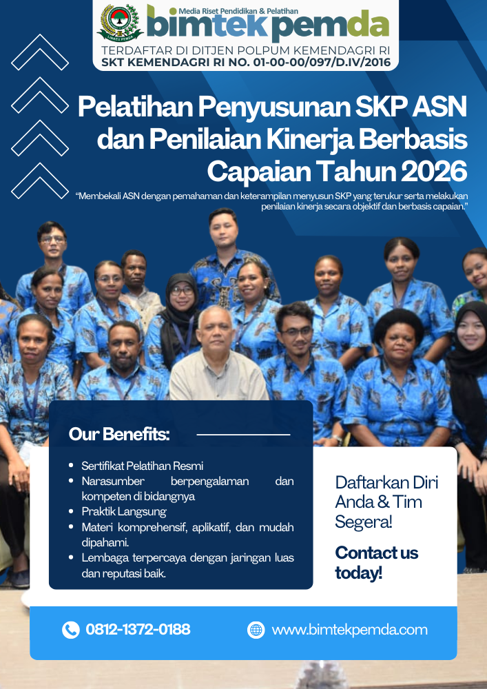 Pelatihan Penyusunan SKP ASN dan Penilaian Kinerja Berbasis Capaian Tahun 2026 dirancang untuk menjawab berbagai tantangan implementasi kebijakan kinerja ASN di instansi pemerintah pusat dan daerah. Pelatihan ini menjadi sarana strategis bagi ASN, pejabat penilai, dan pengelola kepegawaian untuk menyamakan pemahaman, meningkatkan kompetensi teknis, serta memastikan penyusunan SKP selaras dengan arah pembangunan dan kinerja organisasi.