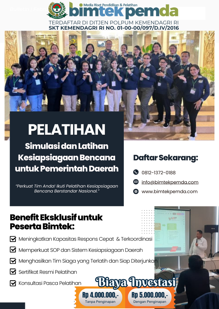 Pelatihan simulasi dan latihan kesiapsiagaan bencana merupakan salah satu elemen terpenting dalam memperkuat kemampuan pemerintah daerah dalam menghadapi berbagai situasi kedaruratan. Tanpa latihan yang terstruktur, risiko keterlambatan respons, kekacauan koordinasi, hingga meningkatnya korban jiwa akan jauh lebih besar. Untuk itu, pemerintah daerah perlu berinvestasi pada pelatihan yang terstandar, terukur, dan berkelanjutan agar penanganan bencana dapat dilakukan dengan efektif.