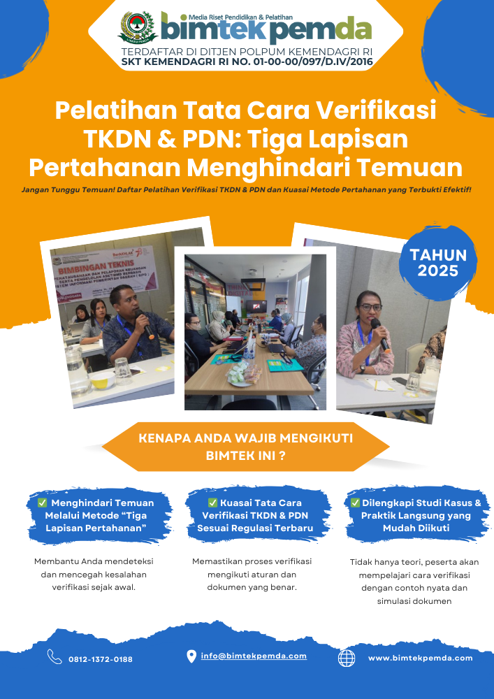 Kesalahan dalam memperlakukan dokumen TKDN maupun PDN dapat berujung pada temuan pemeriksaan dari Aparat Pengawasan Intern Pemerintah (APIP), BPK, maupun lembaga audit lain. Untuk menghindari hal tersebut, diperlukan panduan komprehensif melalui Pelatihan Tata Cara Verifikasi TKDN & PDN yang dibangun dengan pendekatan Tiga Lapisan Pertahanan (Three Lines of Defense), sebuah metode yang umum digunakan dalam manajemen risiko dan pengendalian internal.