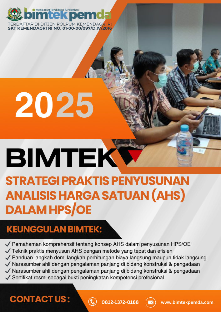 Tingkatkan kompetensi Anda dalam menyusun HPS/OE yang akurat dan sesuai regulasi terbaru dengan bergabung di Bimbingan Teknis Penyusunan HPS/OE Sesuai Perpres 46/2025.