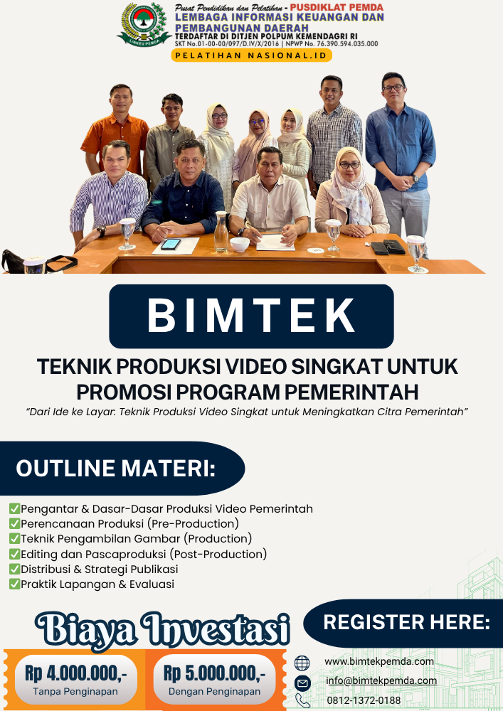 Untuk Anda yang ingin mendalami keterampilan ini secara profesional, tersedia program Training Kreatif: Storytelling dan Konten Digital untuk Promosi Program Pemerintah — pelatihan komprehensif yang membahas strategi storytelling dan teknik produksi video yang sesuai dengan standar komunikasi publik pemerintahan.