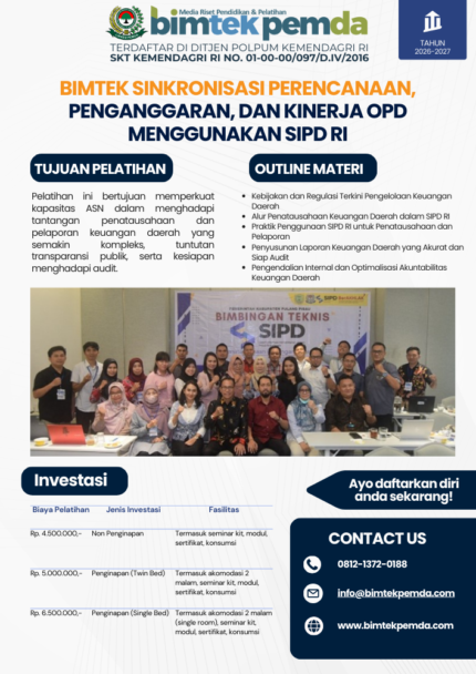 Melalui kegiatan Pelaporan Keuangan 2026 Terbaru, pendidikan dan pelatihan yang kami selenggarakan, para aparatur pemerintah diberikan pemahaman serta keterampilan praktis yang dapat langsung diterapkan dalam pelaksanaan tugas-tugas kedinasan sehari-hari, sesuai amanat peraturan perundang-undangan.