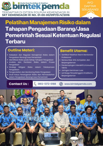 Biaya pelatihan disesuaikan dengan materi, durasi, dan lokasi kegiatan. Hubungi kami untuk penawaran terbaik.